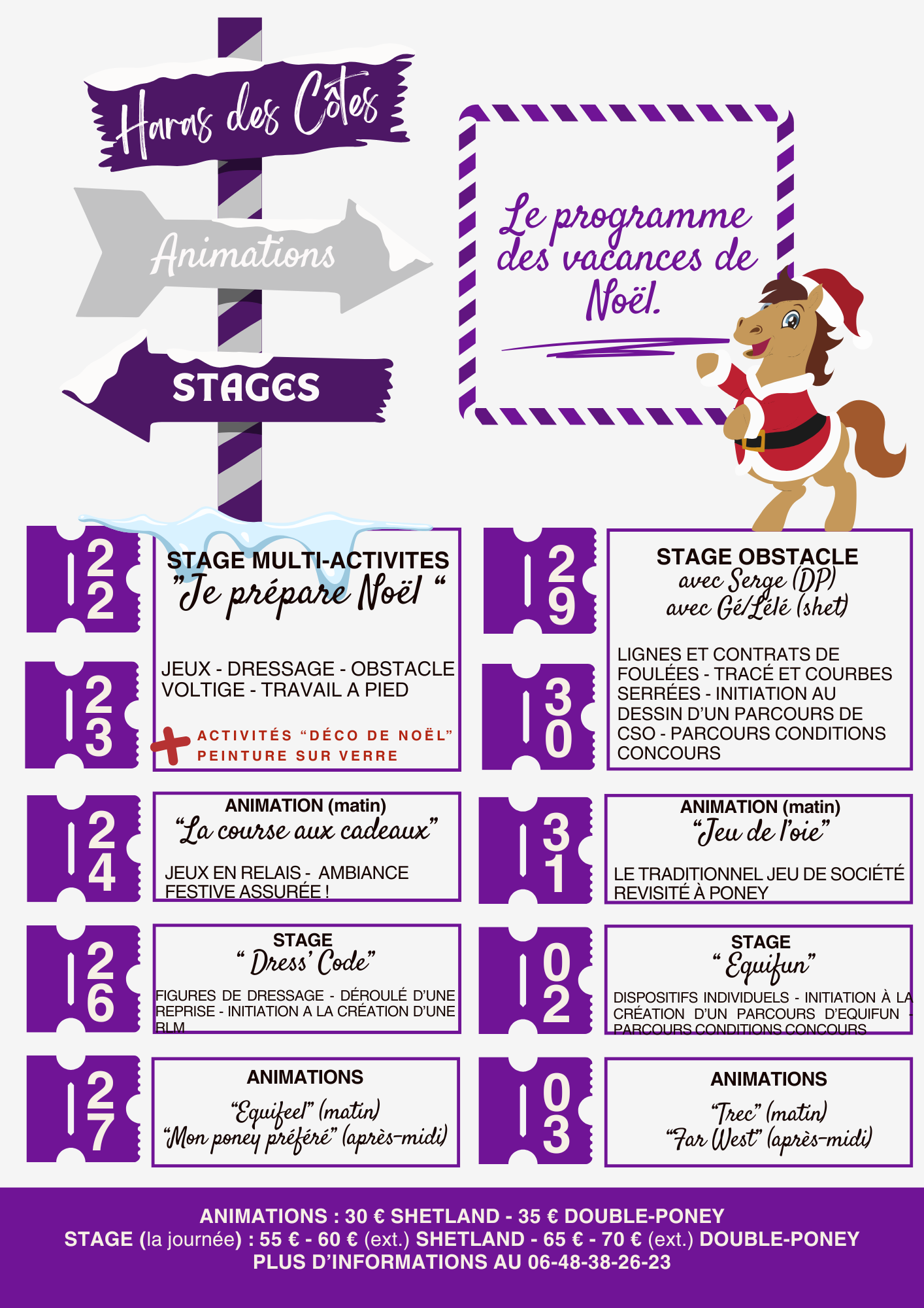 Le programme des vacances de Noël au Poney-club des Côtes est sorti :